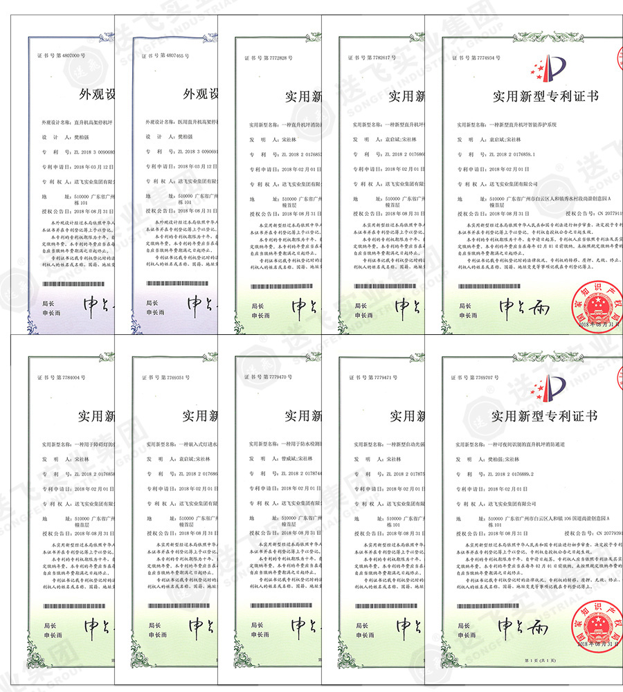 2018年9月10日,我公司(送飛實業集團)已通過國家知識產權局的審批,再次獲得實用新型專利8項授權,外觀專利2項授權。